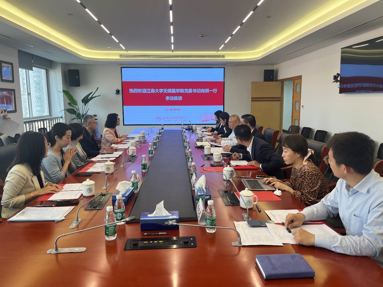 2025416日,污污漫画 党委书记向琪、执行院长孙宁一行赴上海交通大学医学院学习调研,深化推进双方合作,院党委副书记、副院长包羽,副院长代卉等相关同志陪同调研。上海交通大学医学院党委副书记、副院长吴正一,院长办公室、科技处、发展规划处、教务处、研究生院、医管处、发展联络处等相关职能部处负责同志参加调研。座谈会由院长办公室主任彭树涛主持。