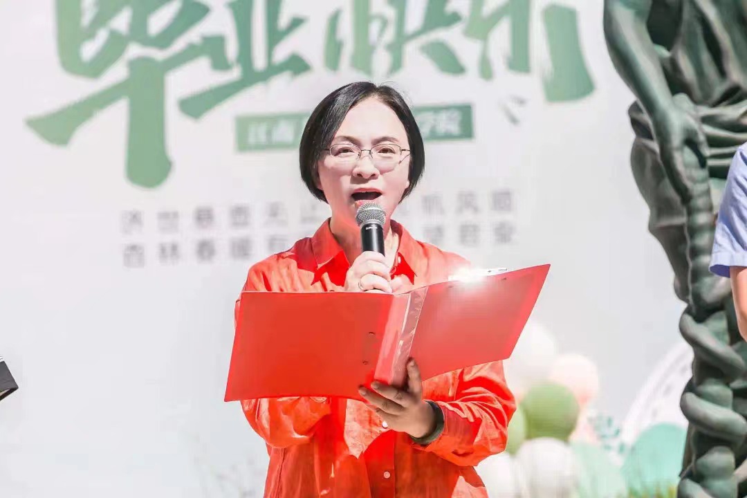 2019级硕士研究生杨博代表毕业生发言,杨博深情回顾了和同学们在一起的点点滴滴,表达了对学校、学院、老师们的感恩与感激,并表示将谨记老师们的谆谆教诲,不辜负老师们的悉心栽培!