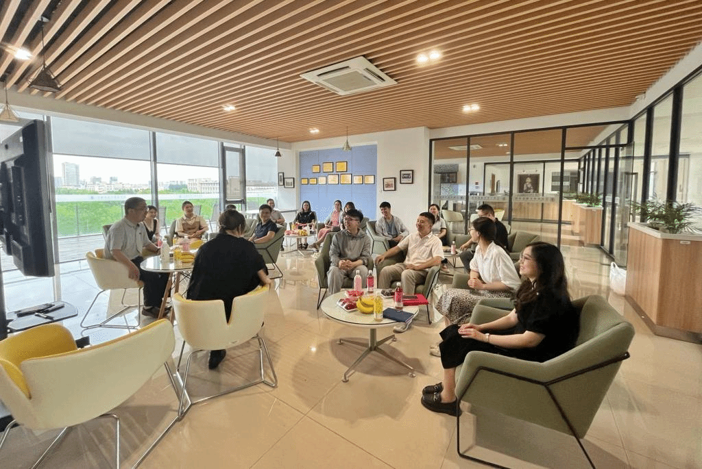 参观结束后,两院学工组在医学院教师发展中心进行座谈交流。奚晓岚对市校合作共建背景下的医学院十年发展历程进行了详细回顾,阐述了医学院“十四五”新一轮教育事业改革发展的建设目标及实施路径,并就学生工作中的医科人才教育培养规律予以重点剖析和介绍。李雷以“双一流”背景下的大学国际化为切入点,从概念、背景、理念与愿景、核心竞争力、校园文化载体、高校对比借鉴等六个方面详细介绍了中国高等教育教学法海外研修项目之新加坡南洋理工大学文化建设探析。