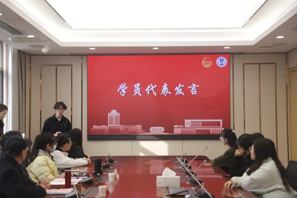 接下来,学员代表庄友毅作题为《做青年马克思主义者,以实际行动践行理想信念》的发言,他表示,“青马工程”训练营不仅能够使广大学生骨干系统学习马克思主义的基本原理和立场观点方法,更能够通过实践锻炼,将理论转化为推动社会进步的实际行动力,让江南医学学子在实践中深刻理解了马克思主义的真谛,坚定为共产主义事业奋斗终身的信念。他号召全体学生骨干坚定信念、不忘初心,勇于担当、尽职尽责,不断学习、提升自我,团结协作、共同奋斗,用青春和热血为共产主义事业奋斗终身。