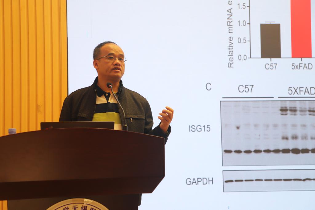 随后,王志昊教授以“认知情感障碍的分子机制初探”为主题,讲授了认知情感障碍的分子机制,首先系统地介绍了C/EBPβ/AEP信号轴在阿尔兹海默病(AD)发病中的具体机制,并围绕APOE4/C/EBPβ/AEP关键分子讲述了开发散发性AD模型的重要应用价值;其次,基于抑郁相关的行为范式,探讨了线粒体损伤、神经炎症在抑郁中的具体机制及相关药物开发。以上研究为理解AD和情感障碍的分子机制提供了新的视角,为AD、抑郁症及衰老的防治提供了新的靶点。