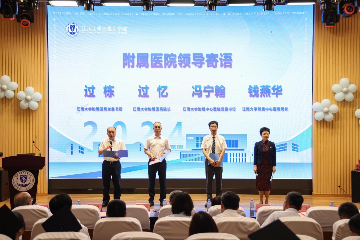 过栋、过忆、冯宁翰、钱燕华等四位附属医院领导为毕业生送上祝福,希望同学们传承医道精神,带着在学校和医院的学习和收获,勇敢追逐梦想,创造属于自己的精彩医学人生!