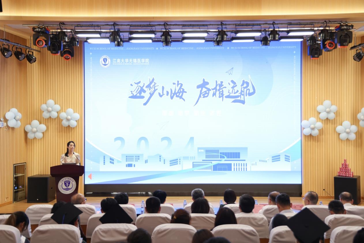 博士生导师孙宁,临床导师茆勇、夏加增,班主任代表蒋玉宇作为教师代表分别回顾了几年来与毕业生们相处的美好过往,欣喜于同学们的成长蜕变。孙宁代表医学院全体导师向毕业生送上祝福,并期望同学们持续学习、勇于创新、心怀家国,服务社会;茆勇寄语毕业生不忘初心、勤奋学习、开拓创新,未来积极推动医学科技和健康事业的发展;夏加增分享了自己的求学经历,寄语同学们把个人理想融入党和国家事业;蒋玉宇祝福毕业生前程似锦,今后在书写时代答卷中,展现出我们江南医学人的独特品质。