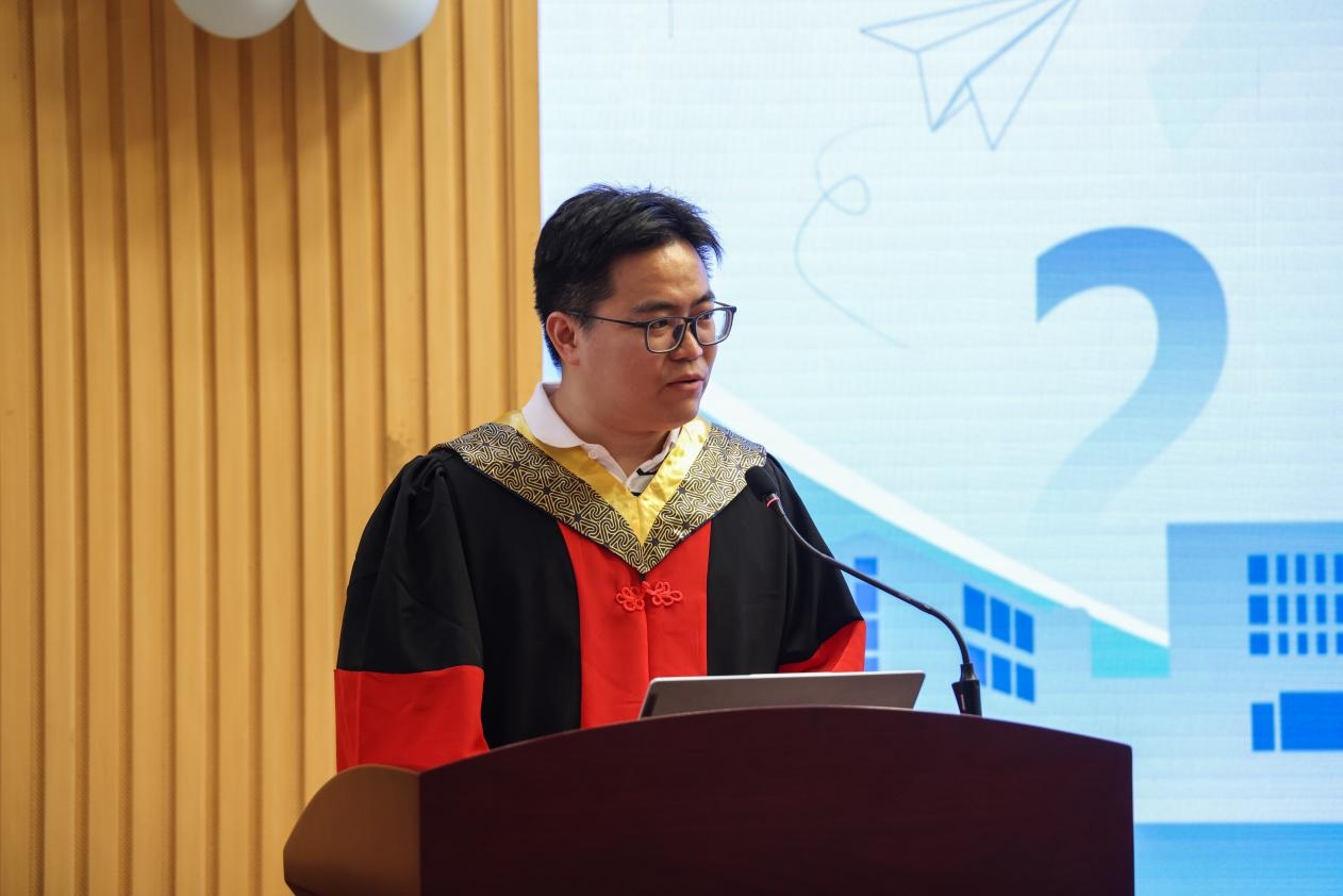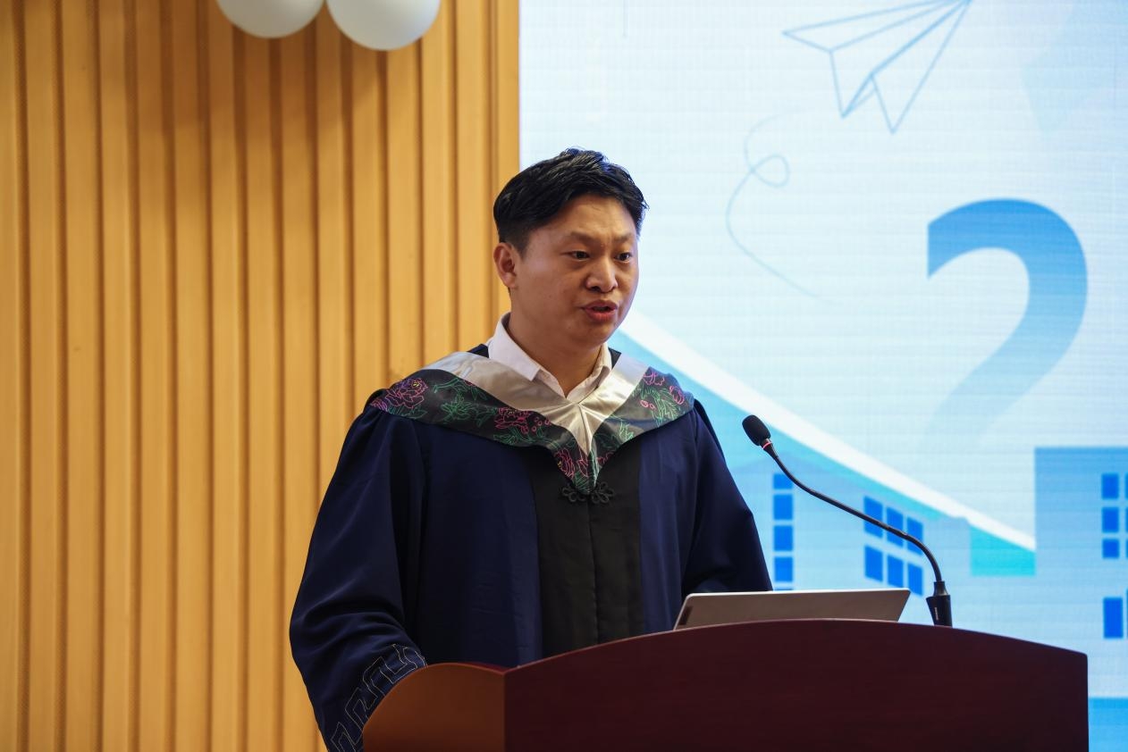 向琪为全体毕业生致以临别寄语。向琪首先代表学院向全体毕业生表示热烈的祝贺,向研究生导师、任课老师、班主任等全体老师致以崇高的敬意和感谢。同时对毕业生们提出了四点希望。一要学以报国,赓续医学家国情怀,让青春理想在奋进强国的征程中焕发出耀眼夺目的时代光芒。二要德以济世,坚守医者博爱情怀,保持对医学的热爱和敬畏之心,成为具备社会责任感和价值感的大医、良医。三要技以立身,精研医技妙手仁心,提升医学技能的人文厚度和情感温度,在求真实践中获取真知、实现理想。四要研以启慧,绘就医路锦绣篇章,在科研一线冲锋在前、在医学前沿矢志探索、在平凡岗位踏实奋斗,争做堪当民族复兴重任的时代新人。