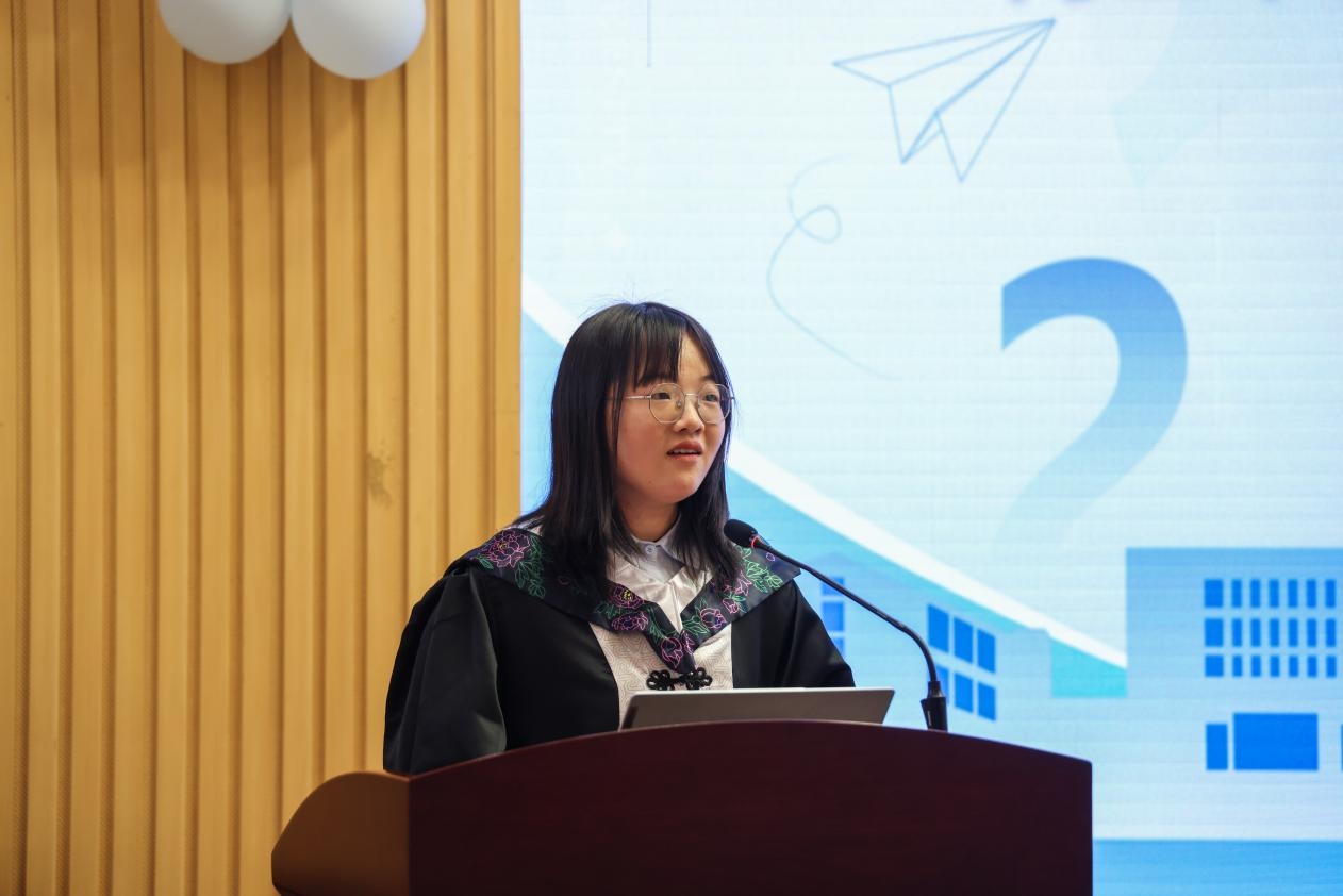 2020级博士研究生史文涛、2021级硕士研究生高静、2019级本科生李艳婷作为毕业生代表发言。三位同学深情回顾了在校求学期间的点点滴滴,表达了对学校、学院、老师们的感恩与感激,并表示将谨记谆谆教诲,不负学校学院的悉心栽培!