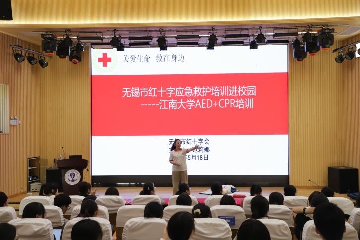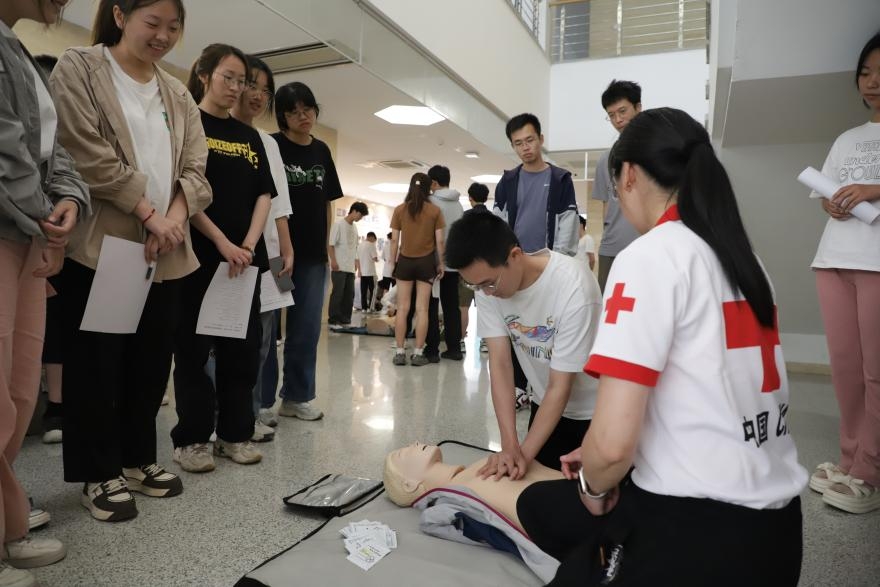 近日,无锡市红十字应急救护培训在医学院C101报告厅举行,无锡市红十字会、校医院等多位培训导师受邀参加此次培训活动。学院100名本科生参与本次培训并完成了CPR+AED急救证书考核。