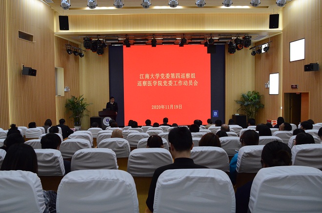 11月19日,学校党委第四巡察组巡察医学院党委工作动员会在学院C101报告厅召开。巡察组组长、校党委常委、副校长田备作动员讲话,校党委常委、党委办公室主任、党委统战部部长兼保密办主任、党委巡察工作领导小组成员朱飞代表校党委巡察工作领导小组提出工作要求。学院党委书记向琪作表态发言并做学院党委工作报告,学院党委副书记副院长奚晓岚主持会议。巡察组全体成员出席会议,学院领导班子成员和全体教职工参加会议。