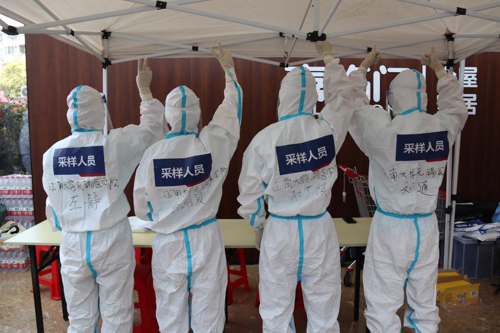 在无锡市广瑞路街道核酸采样检测点,医学院的志愿者们脱下防疫“盔甲”,无菌帽已被汗水完全浸湿,双手已被汗水浸泡到发白。维持现场秩序的志愿者们耐心细致地为前来参加核酸采样的居民提供讲解、引导、申请预制码等服务。