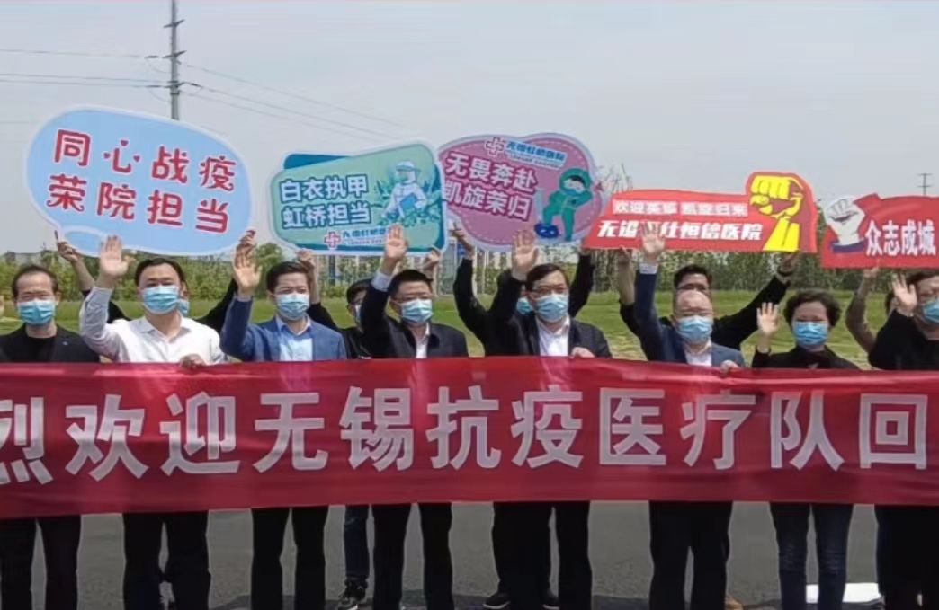 援苏核酸检测教师志愿者奋战16天,四战张家港,九战昆山,累计采样70000余例,圆满完成援苏核酸检测任务。无锡市副市长秦咏薪、无锡市卫健委党委书记兼主任笪学荣、党委副书记过栋、副主任王新华、医学院院长马鑫等领导在南泉站口迎接志愿者队伍凯旋。