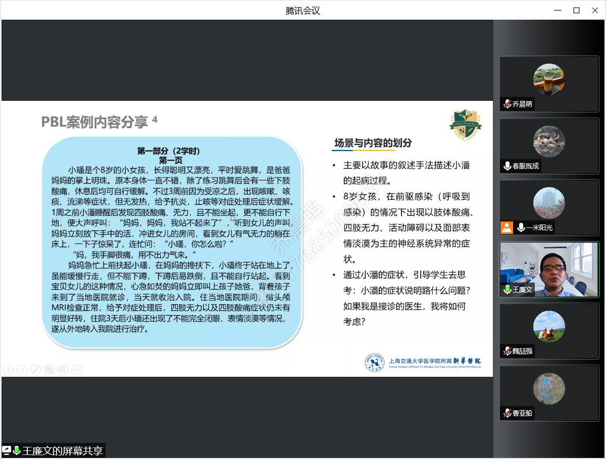 附属医院教育处徐德武处长主持,徐处长从教育思维的转变与更新到PBL教学的理念、规律、特点及重要性等方面详细解读了PBL教学在临床医学专业教学中的特殊性和必要性。培训邀请了上海交通大学医学院PBL教学团队的专家线上授课,由专题讲座和实践训练两个部分组成。专题讲座涵盖了“如何做一名合格的PBL tutor”、“PBL撰写技巧及优秀案例分享”、“Workshop PBL案例撰写”;实践训练内容包括了“PBL带教示范”、“小组为单位的PBL工作坊”等。通过专题讲座和实践训练,老师们进一步了解了PBL教学的流程和环节以及PBL案例撰写的要求和技巧,对PBL教学理念与精髓、PBL教学方法有了更深刻的理解。