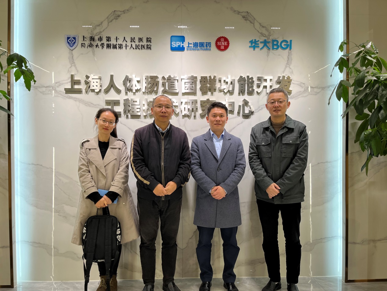副院长孙宁、医学科研中心主任冯磊、医学科研中心技术人员周益舟赴上海市人体肠道菌群功能开发工程技术研究中心(以下简称“工程中心”)走访调研。