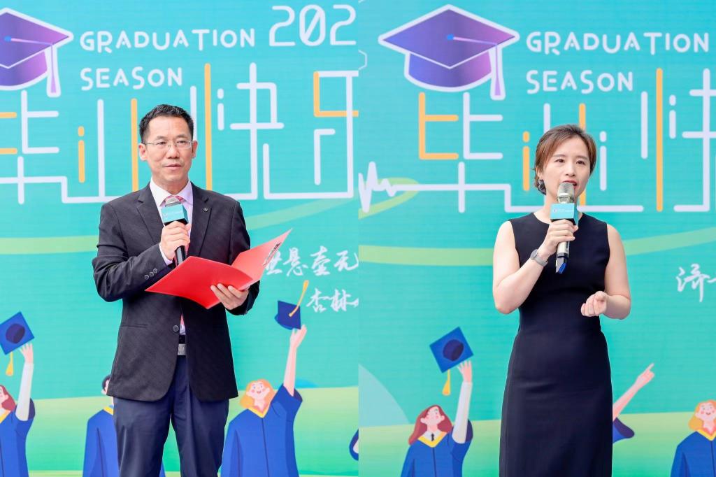 2019级博士研究生阚昊、2018级本科生张耀东作为毕业生代表发言。两位同学深情回顾了大学生活的点点滴滴,表达了对学校、学院、老师们的感恩与感激,并表示将谨记老师们的谆谆教诲,不辜负学校学院的悉心栽培!