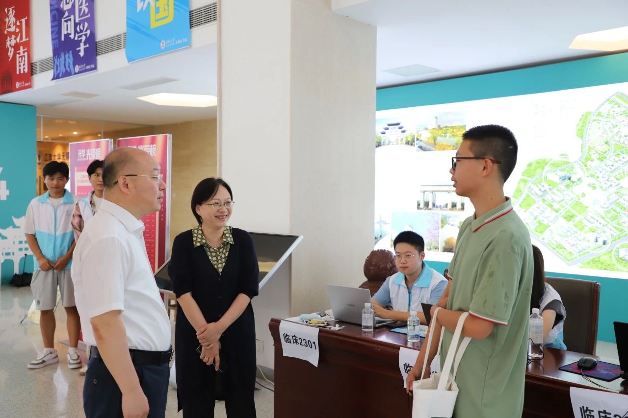 附属医院教育处处长徐德武,医学院教授黄亿、韩甦和辅导员李奈夏、鲁钦正老师等亲临报到现场,并走访新生宿舍,亲切慰问新生入学情况。“同学,你来自哪里?”“对宿舍还满意吗?”“为什么选择学医,是家里也有亲人学医吗?”领导们与新生亲切交流,并对不同学科专业的学生均给予了有针对性的科研学习建议,鼓励同学们要学会利用学院和医院双平台,做好学习规划,加强科研攻关,以积极的心态迎接大学生活,在崭新的医学道路上行稳致远。