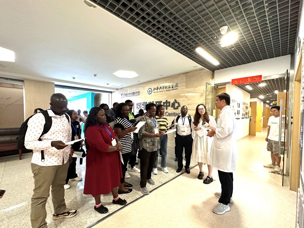 及附属医院在学科建设、人才培养和科学研究等方面的情况。公共卫生与健康研究院副教授刘焕良就血吸虫防治方面的研究与成员进行了深入交流。研修班一行随后参观了医学科研中心和人体科学馆,对先进的科研平台设施和医学教学条件表示高度赞赏。