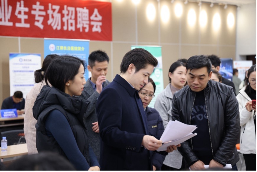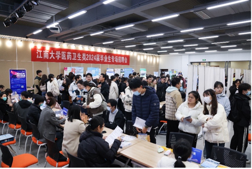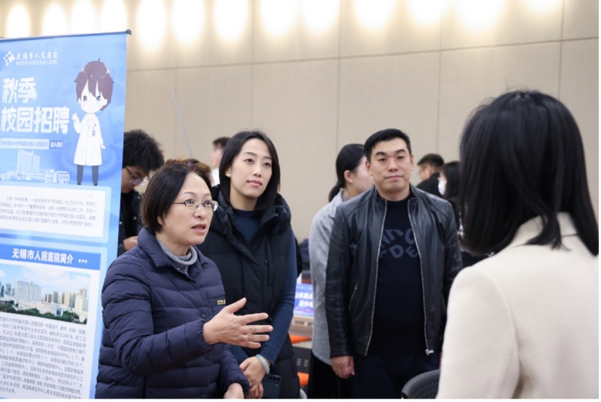 教学医院无锡市第九人民医院、无锡市人民医院、无锡太湖学院、无锡市南京大学锡山应用生物技术研究所、药明康德、阿斯利康、华瑞制药、扬子江药业、长风药业等无锡、江阴本地和江苏省内医疗卫生机构、科研院所、医药龙头领军企业等用人单位近百家,提供优质就业岗位1200余个,招聘岗位涵盖临床医学、基础医学、护理学、公共卫生与预防医学、药学、制药工程等专业,适应本硕博应届毕业生求职需求,吸引400余名学生到场参加。