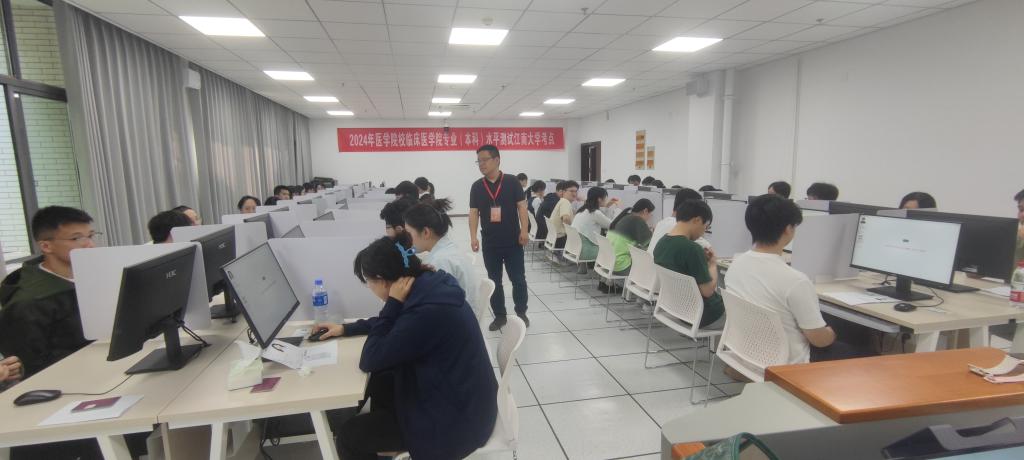 为了组织好本次水平测试,医学院在考前召开水平测试筹备工作会议,医学院和两家附属医院共遴选了38名考官、50余名技术、监考和考务人员参与工作,布置了2个机考考室和18个OSCE考站,多次召开考务会议,精心组织考官培训和SP培训,提前做好耗材物品准备工作,从考试流程设计、考场布置、考官培训到SP培训等各项考务工作,均严格按照国家医学考试中心的要求进行,确保考核工作公正公平、规范有序。考试期间,医学院副院长程洋巡视考场,考场秩序井然,考官严肃认真,考务人员细致周到。此外,国家医学考试中心还安排技术专家来校作CTA试点现场技术指导。最终,各环节考试圆满完成。