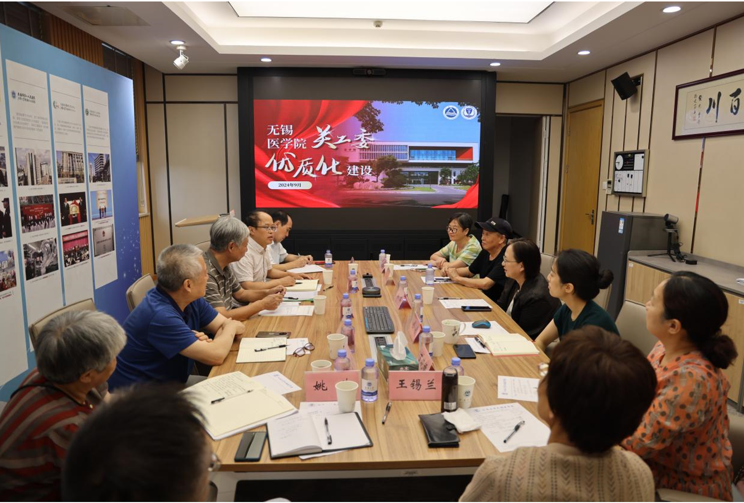 9月26日下午,校关工委常务副主任娄国栋一行赴医学院调研指导工作。校关工委常务副主任娄国栋,离退休党工委书记、秘书长张才兴,校关工委副秘书长、医学院关工委常务副主任吴骥一,校关工委副秘书长鲍国庆、衡延笃,校关工委秘书处姚欣出席并指导工作,医学院党委书记、关工委名誉主任向琪,副书记、副院长、关工委主任包羽,附属医院关工委常务副主任、医学院关工委常务副主任王锡兰,医学院关工委委员、特邀报告员王永南,兼职组织员丁晓嫣、陈敏娟,辅导员及学生委员参会。