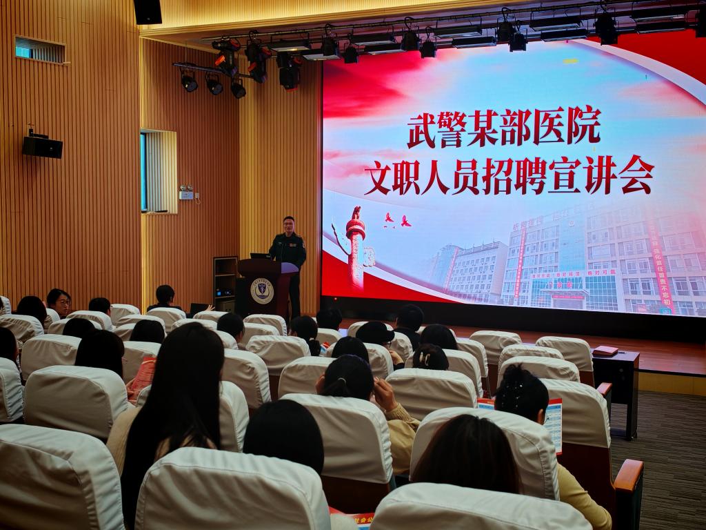 武警某部医院是一所服务部队、面向社会,集医疗卫生、教学研究、预防保健为一体的综合性二级甲等军队医院。李雪元老师为毕业生们详细介绍了医院的基本情况、规章制度以及招聘条件,尤其是对文职人员的各项待遇进行了详细说明,并进行现场答疑。同学们针对职业发展方向、培训机会、工作环境、薪酬福利等方面的问题热烈提问,现场气氛活跃。李雪元老师耐心地一一作答,不仅提供了详尽的行业信息,还分享了自己的职业发展经验和心得体会。