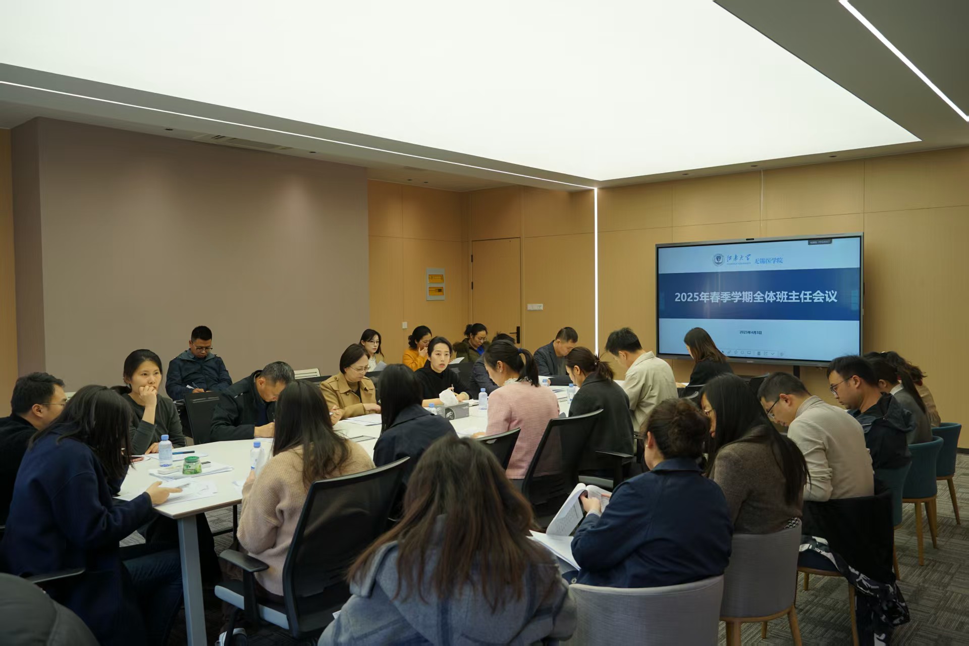 会上,包羽首先面向全体班主任老师强调工作基本要求,强调安全稳定工作关键性、重要性,通过具体案例提示全体班主任结合医学院研本学生实际,下沉寝室、教室、实验室、餐厅“三室一厅”一线,扎实做好管理工作。包羽向班主任明确重点人群类型,提醒班主任在班级完善班级内学生管理队伍及朋辈心理工作队伍的培养培训。包羽还向毕业年级班主任通报当前就业进展,提醒班主任做好毕业生就业进度跟踪,与学院一同做好访企拓岗等就业资源扩展,推动2025届毕业生充分就业。
