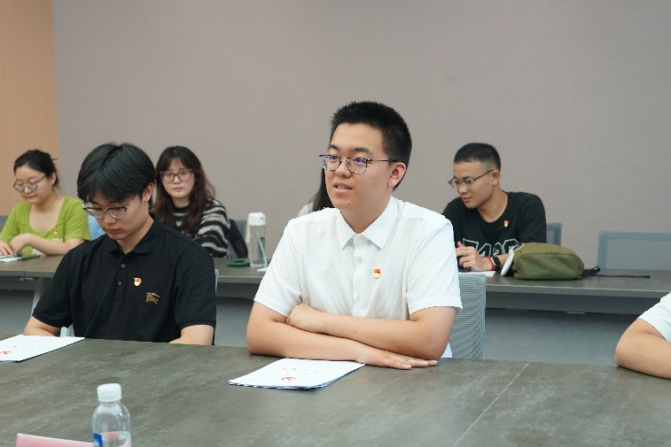 新党员代表临床医学专业本科生韩得申在发言中表示,将始终牢记入党初心,以党员标准严格要求自己,在医学学习和实践中发挥先锋模范作用,为党和人民的健康事业贡献力量。