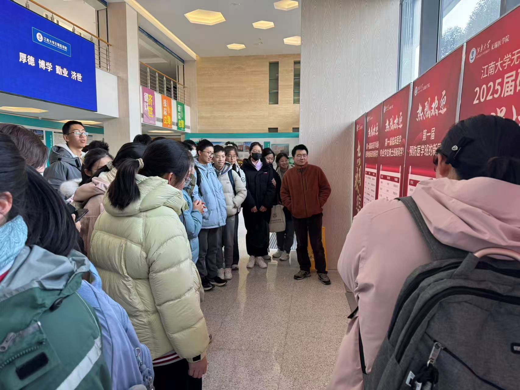 迎来了多批充满朝气的年轻学子。12月25日至27日下午,来自无锡市第一中学高一、高二年级以及无锡女子高级中学的学生们分批次走进医学院,开展以“探索医学,启航未来”为主题的研学实践活动。此次活动旨在加强学院与本地优质生源高中的衔接,通过沉浸式体验,激发青少年对医学事业的兴趣与向往。