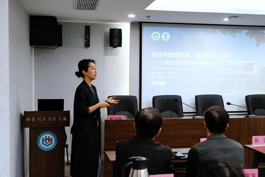 滨湖区卫健委朱旻副主任在发言中,对校地双方开展常态化交流合作的重要性给予了高度肯定。他指出,社区卫生服务是医疗卫生体系的“网底”,对医学人才的专业素养和实践能力有着较高要求,期待通过校地协同育人,为基层卫生事业输送更多实用型人才,实现校地双赢。