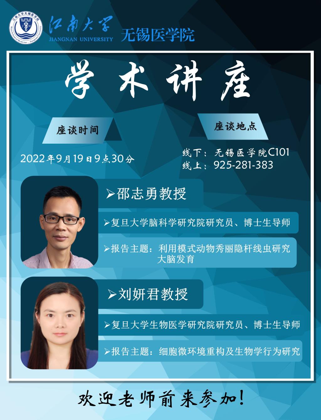 讲座嘉宾:邵志勇教授 复旦大学脑科学研究院研究员、博士生导师
