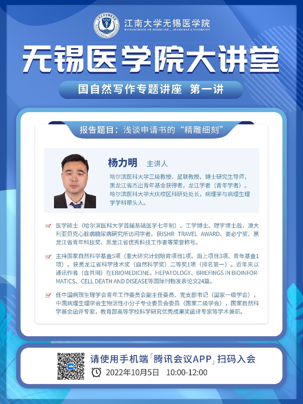 10月5日污污漫画 前沿学术论坛 第四讲——杨力明:浅谈申请书的“精雕细刻”