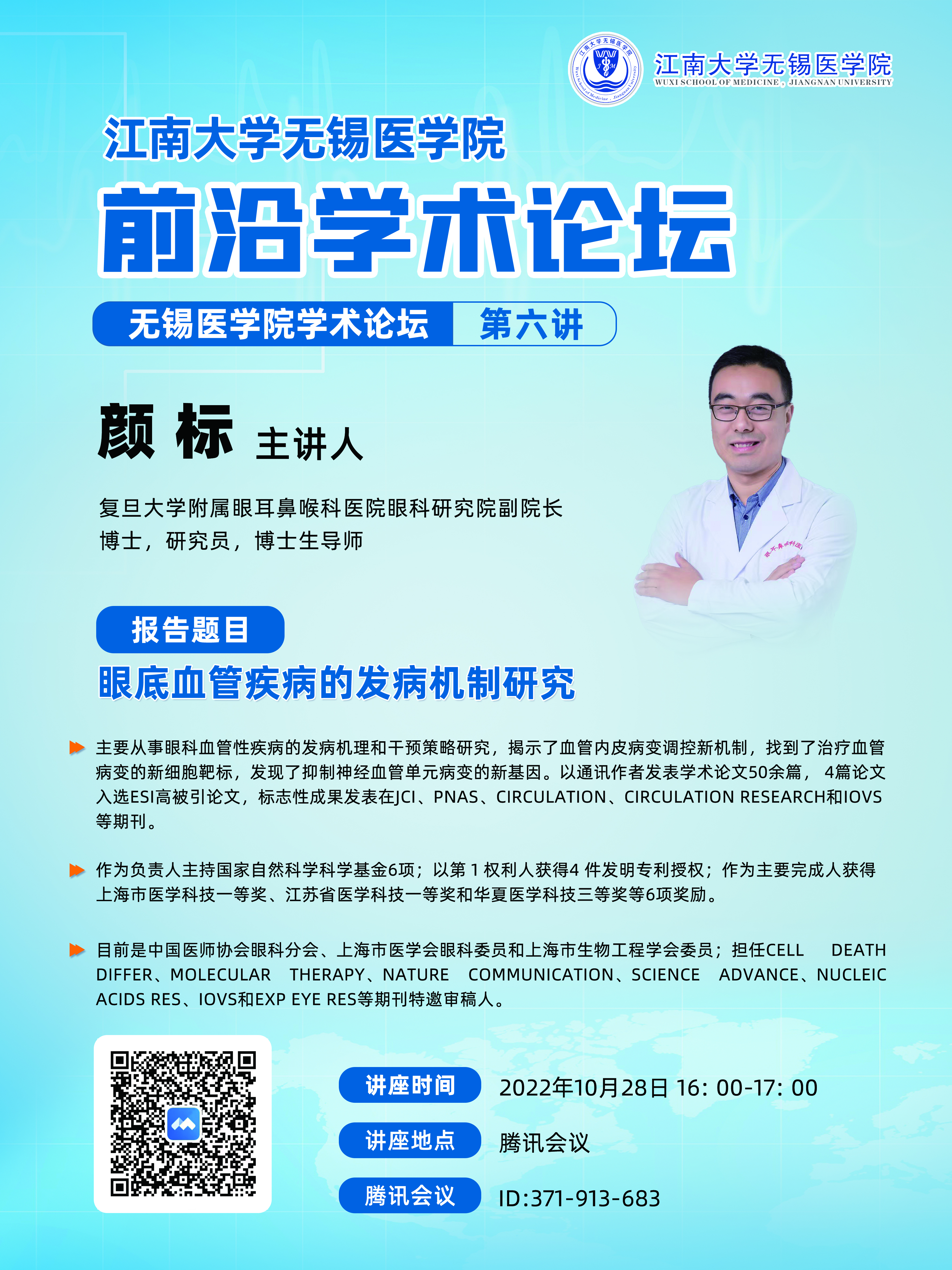 10月28日污污漫画 前沿学术论坛 第六讲——颜标:眼底血管疾病的发病机制研究