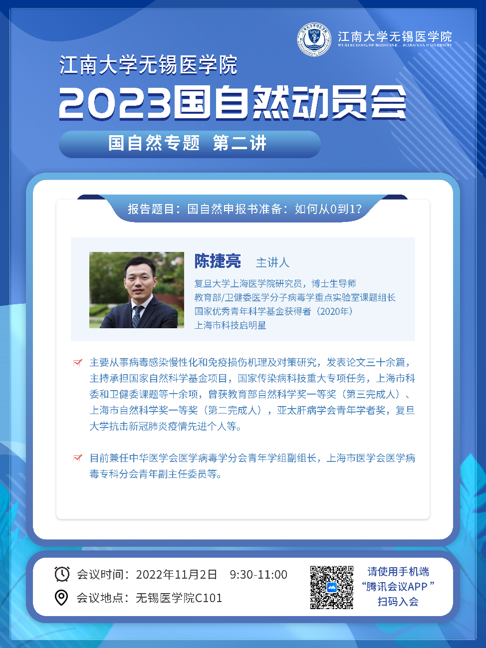 讲座题目:陈捷亮:国自然申报书准备:如果从0到1?