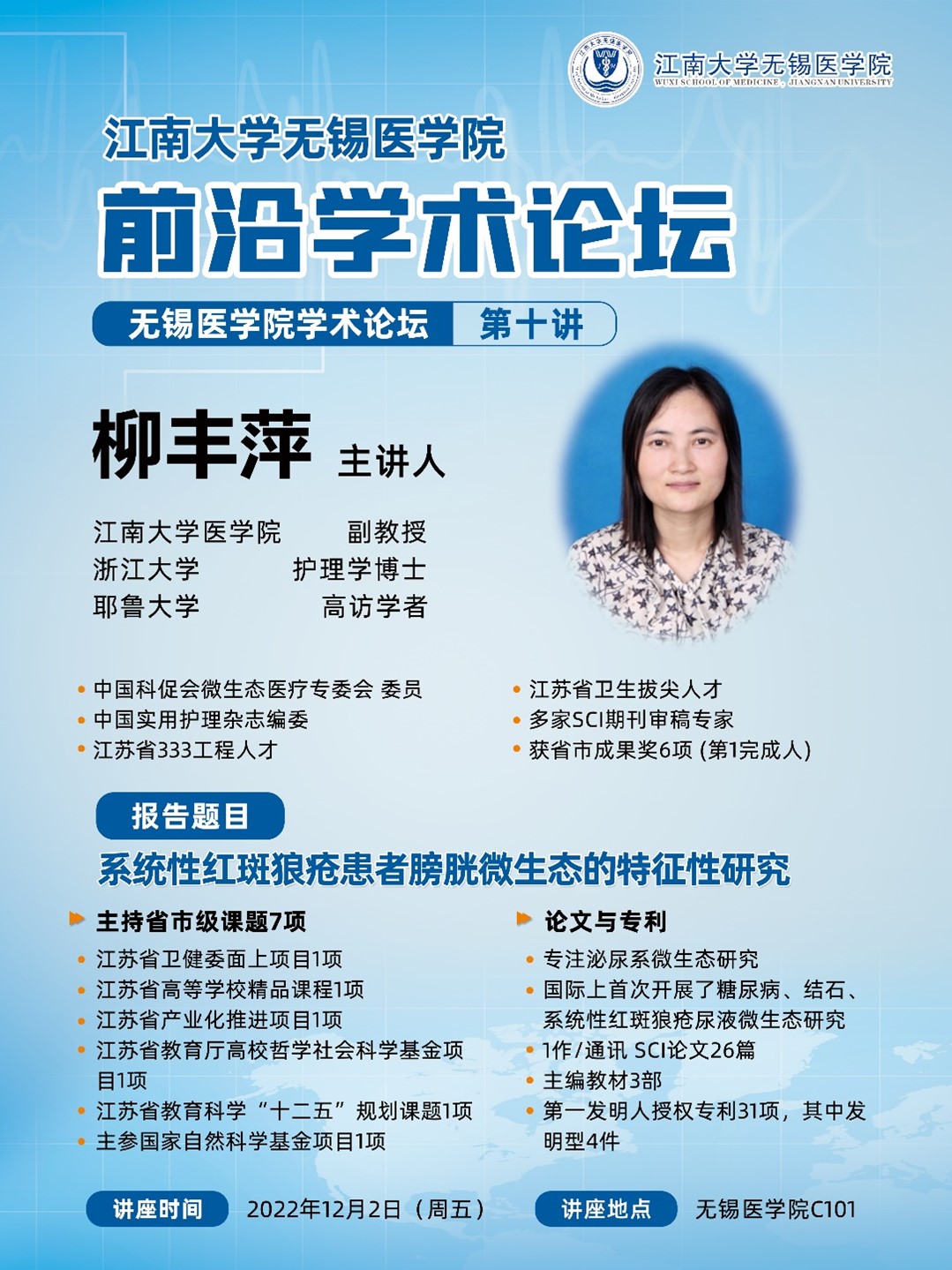 12月2日污污漫画 前沿学术论坛 第十讲 柳丰萍——系统性红斑狼疮患者膀胱微生态的特征性研究