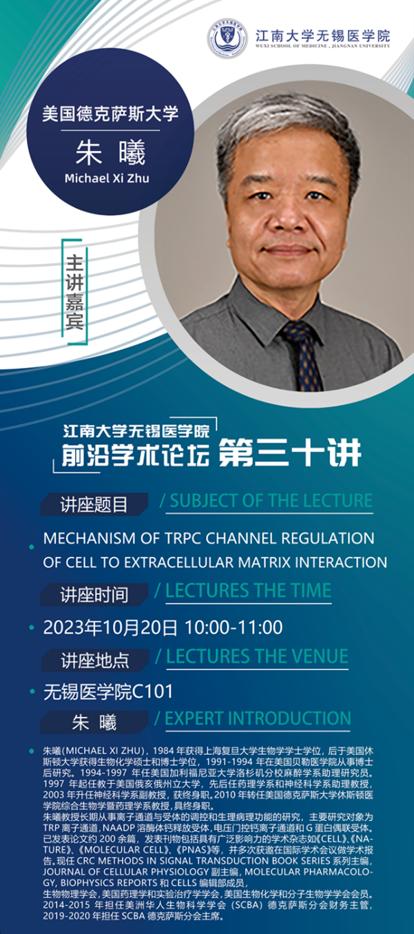 10月20日污污漫画 前沿学术论坛第三十讲 朱曦教授——Mechanism of TRPC Channel Regulation of Cell to Extracellular Matrix Interaction