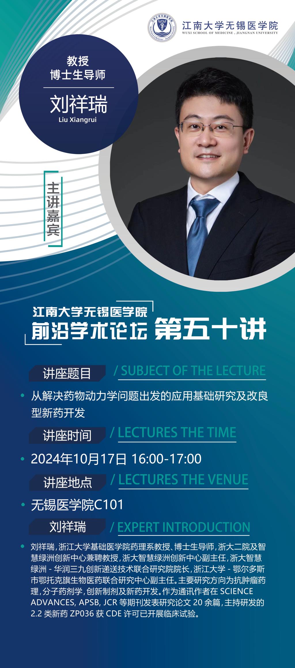 10月17日 刘祥瑞:从解决药物动力学问题出发的应用基础研究及改良型新药开发