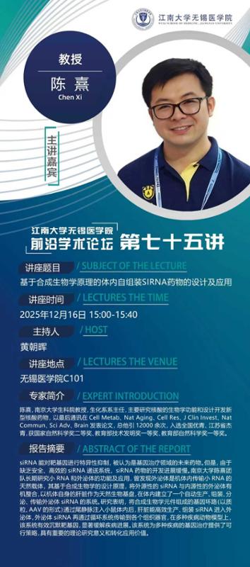 12月16日 陈熹:基于合成生物学原理的体内自组装siRNA药物的设计及应用;周泉:抗肿瘤高分子递药系统的构建及递送行为研究