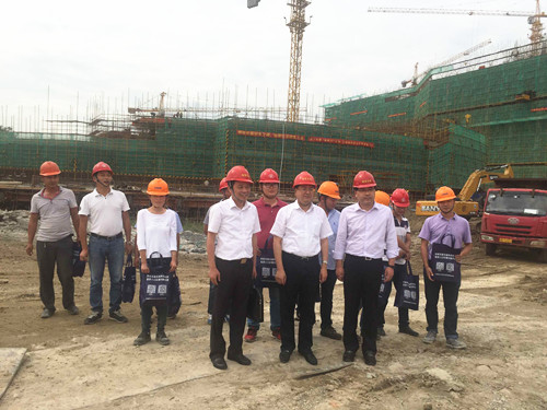 国庆中秋双节将至,市卫生计生委领导十分关心附院易地建设项目进展及施工安全。9月29日下午,市卫计委党委书记、主任谢寿坤主任、副主任笪学荣、副主任杨如年等一行领导,在附院党委书记华东、副院长刁文凯及无锡城发集团项目负责人等的陪同下,来到新四院易地建设项目工地,进行现场视察和安全检查。施工现场,谢主任对奋战在一线的各参建单位及施工工人带去节日亲切的慰问,并发放节日慰问品。视察中,谢主任再次强调项目建设高度重视施工安全,保质保量完成阶段性工作。 (基建办)