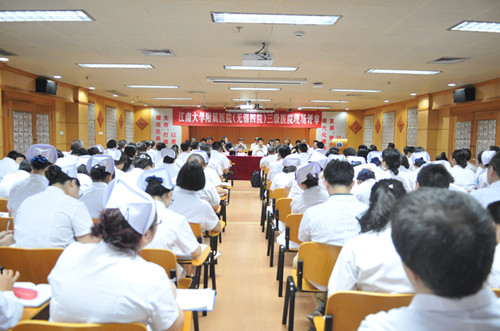 19日下午,附院全体领导及临床一、二级科主任、职能科室负责人、支部书记、科护士长、护士长等150余人在学术报告厅参加了评审反馈会。