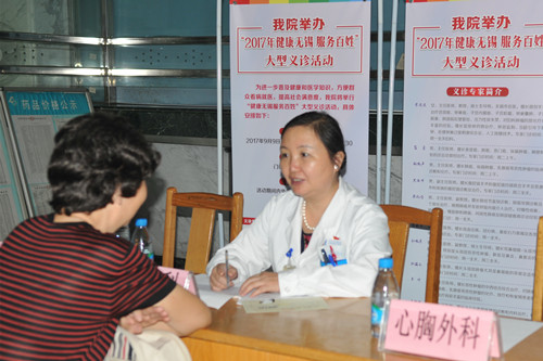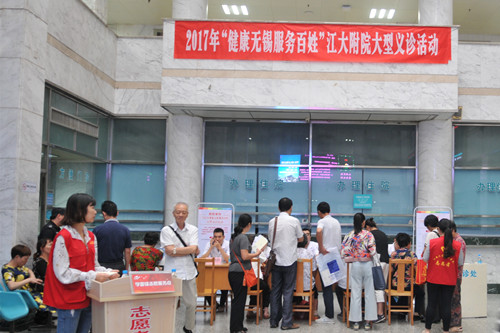 9月9日上午,附院门诊大厅人头攒动,2017年“健康无锡 服务百姓”大型义诊周活动正在这里举行。据悉,此活动是附院根据国家卫计委及省卫计委对2017年“服务百姓健康行活动”全国大型义诊活动周的统一部署,积极响应市卫计委号召而举办,旨在进一步普及健康、医学知识,方便群众看病就医,提高社会满意度。