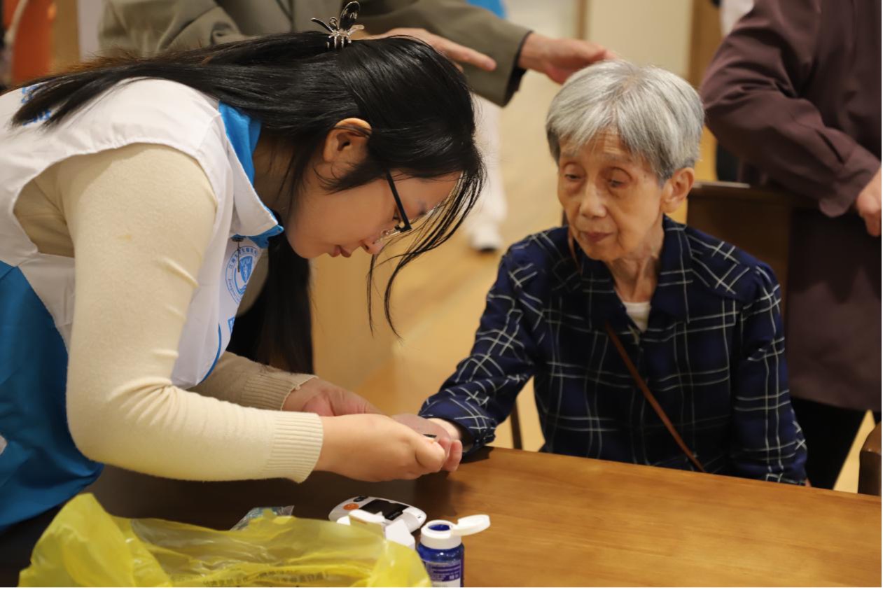“春禾计划”的志愿者们为老人们进行了义诊。志愿者们一边为老人们测量血压、检测血糖,一边耐心询问老人们的生活情况,结合所学专业知识为老人们提供合理的建议,增强老人们的健康生活意识。